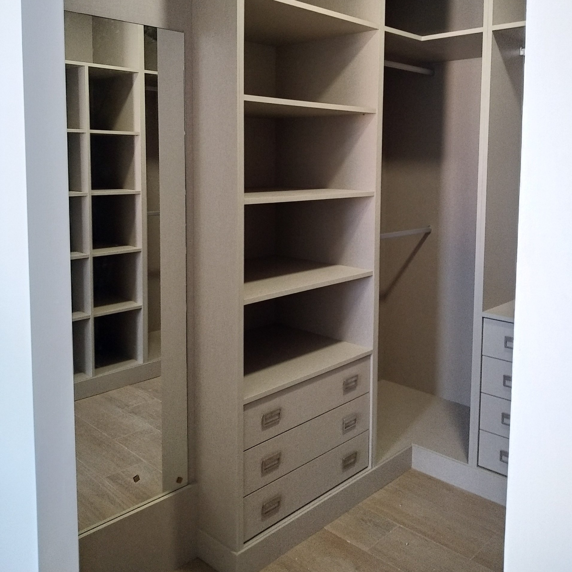 Con una larga experiencia en el sector ,diseñamos los armarios según las necesidades del cliente para encontrar la mejor distribución del espacio interior del armario. Todas las cajoneras, interiores y puertas son fabricadas en nuestra taller utilizando para ello los mejores y más prácticos herrajes.